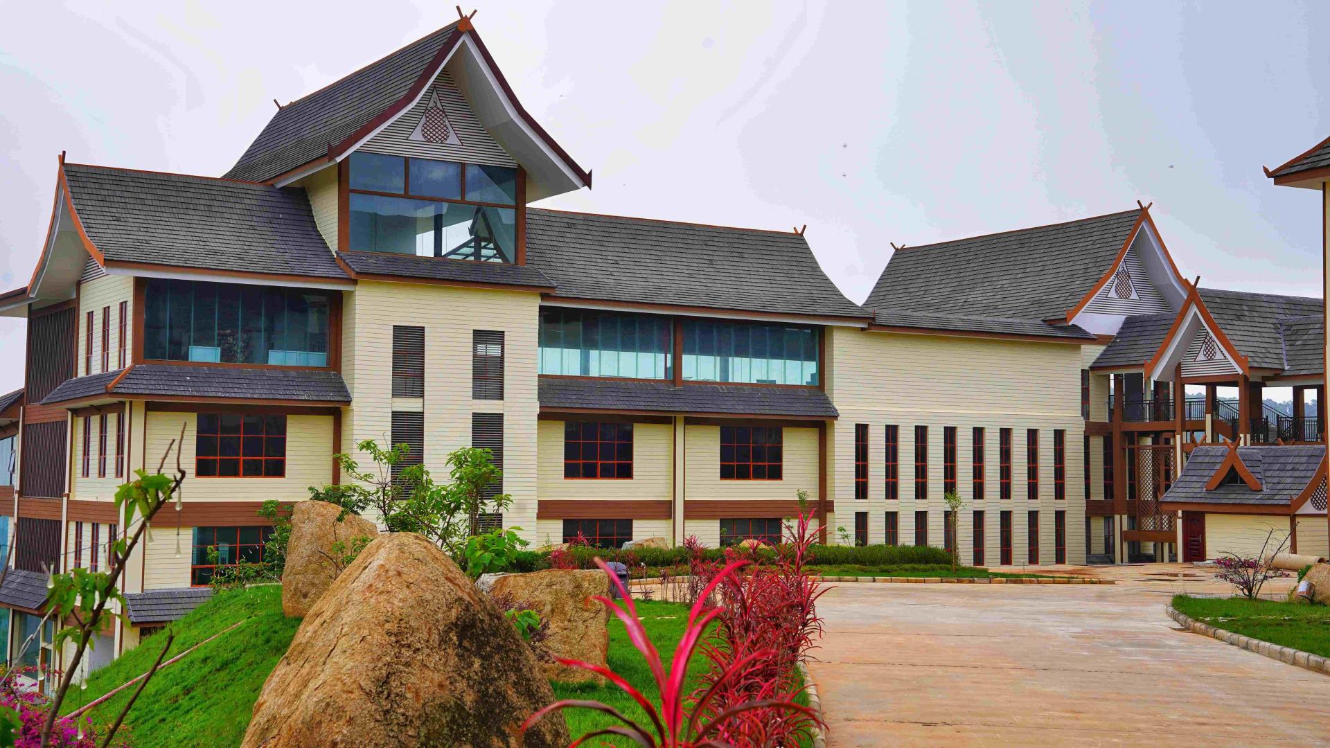 賀開莊園具有濃郁的民族氣息,主題建筑由金剛葫蘆門、聞香樓、妙香坊、藏香閣、夢(mèng)香軒等組成。 金剛葫蘆門創(chuàng)意來源于拉祜族吉祥物葫蘆及拉祜族民居歇山屋頂,歡迎天涯海角的茶友吉祥如意。拉祜族,也正是賀開古茶山的原住民,世代以茶為生。